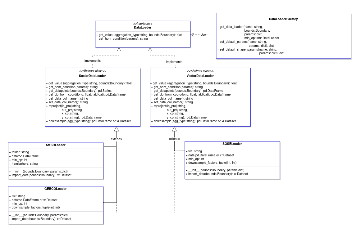 The abstract classes generalise the methods used by each dataloader type to produce outputs